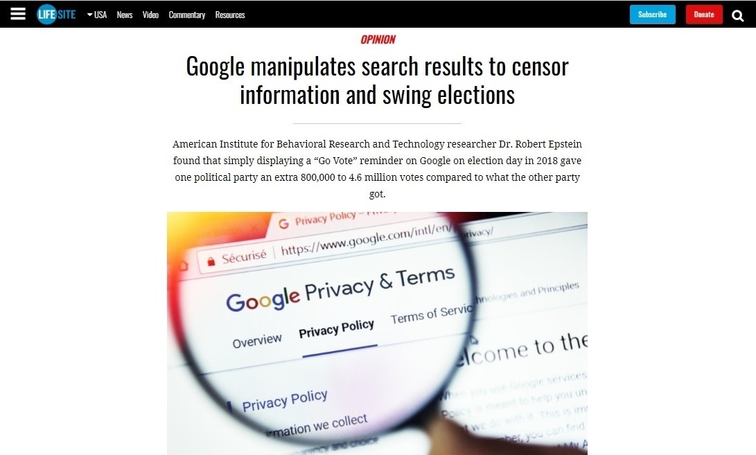 Zdolność Google do kontrolowania polityki publicznej: kreowane są „huśtawki wyborów” i szerzony proceder „prania mózgów”.